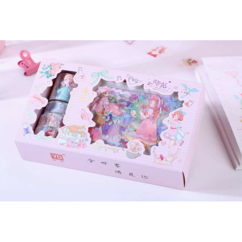 Set 4 tờ miếng dán trang trí sổ tay hình bé gái đáng yêu