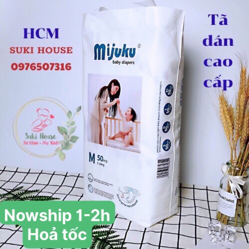 Tã dán Mijuku xuất Nhật siêu mỏng, siêu thấm hút, khô thoáng, đầy đủ size S50, M50, L50 giá tốt free ship