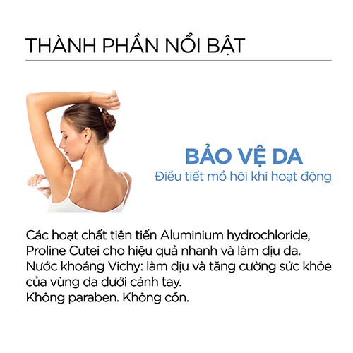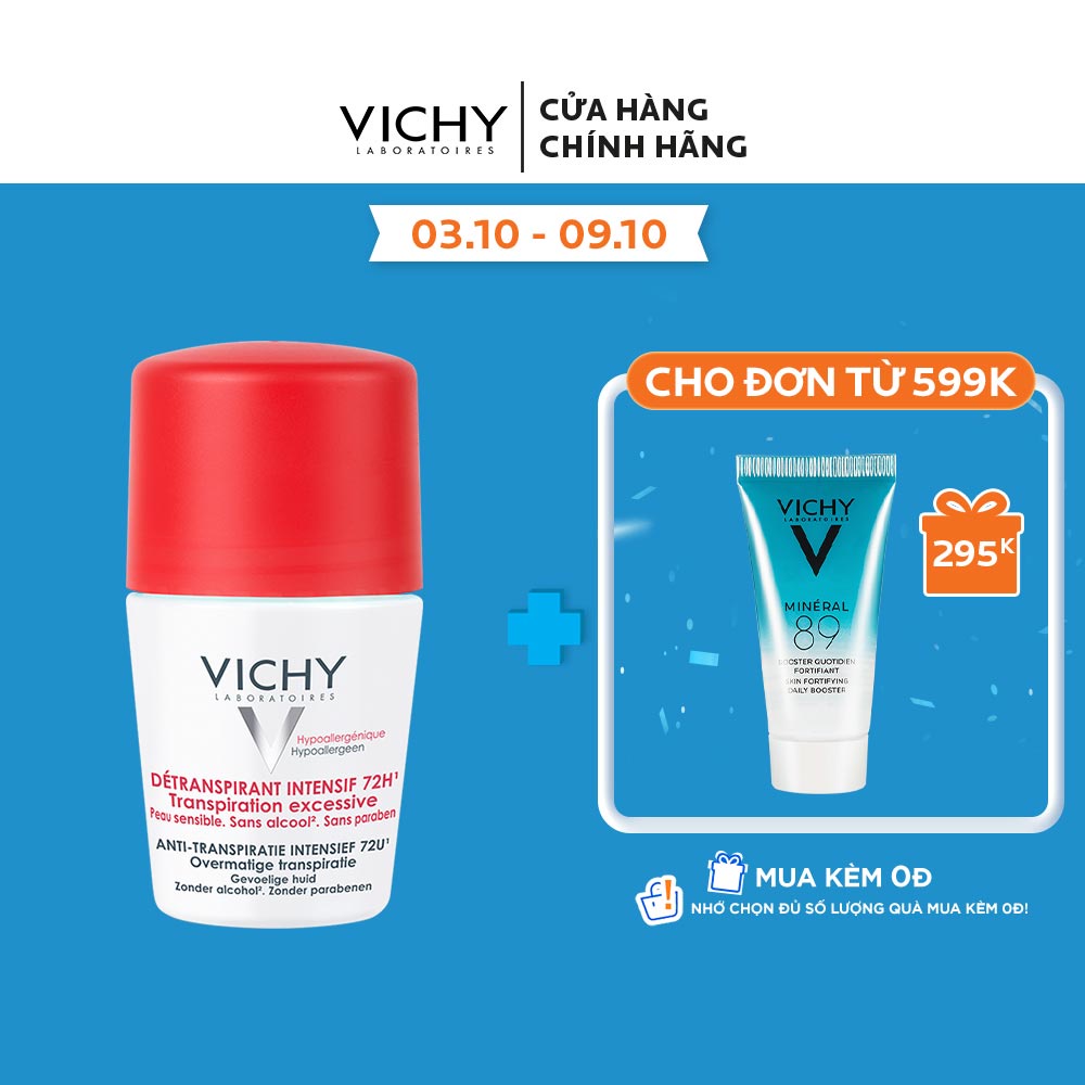 Lăn khô thoáng vùng da dưới cánh tay 72h Vichy Détranspirant Intensif 50ml free ship