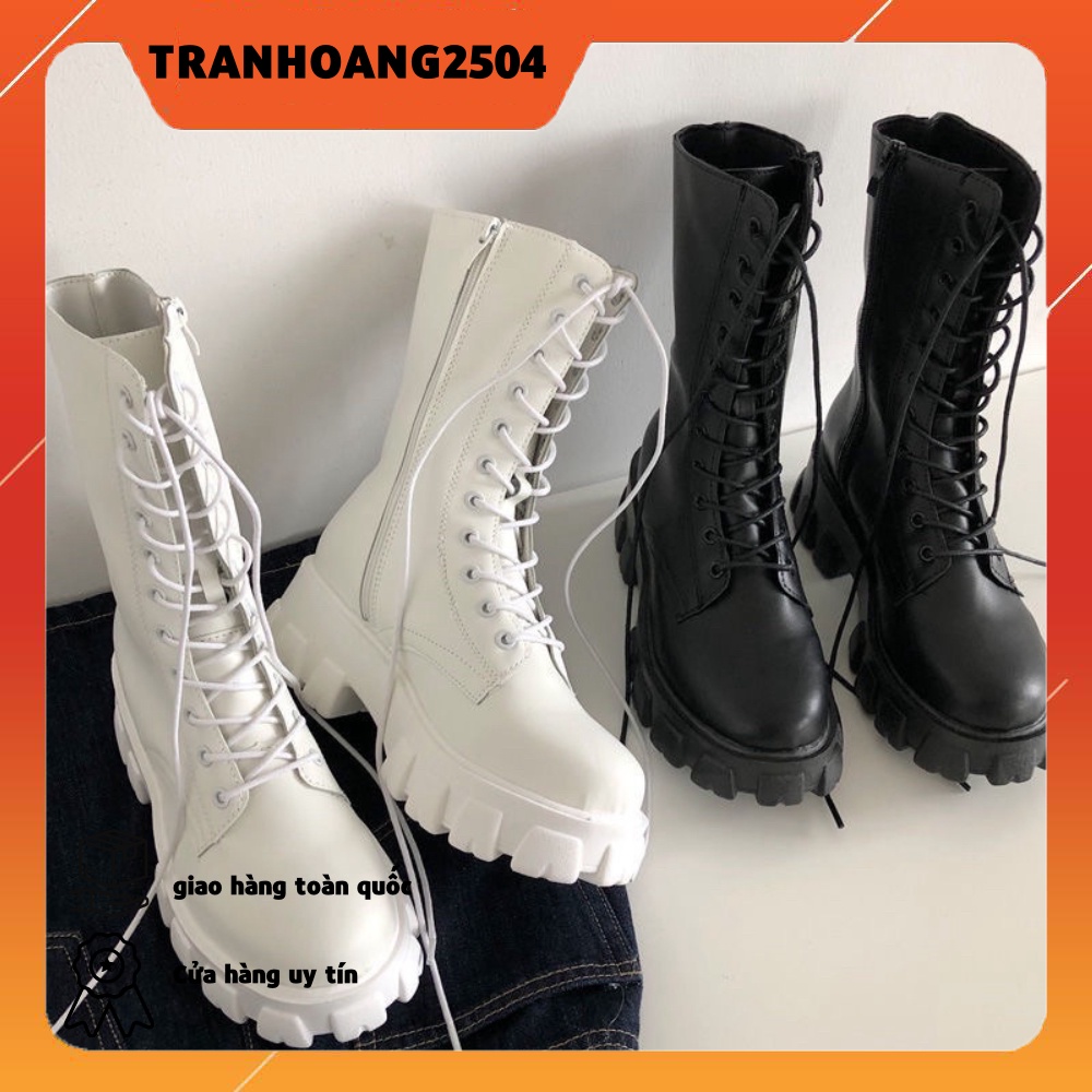 Freeship- [CÓ SẴN] Boot ulzzang cao cổ 20cm buộc dây kéo khóa đế cao 5.5cm màu đen/trắng cá tính đẹp mới xinh thời trang mua tại đây