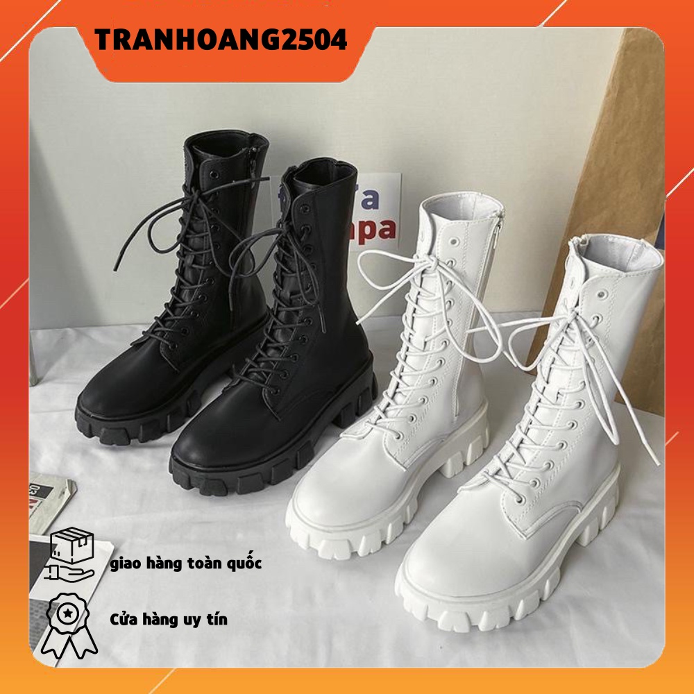 [CÓ SẴN] Boot ulzzang cao cổ 20cm buộc dây kéo khóa đế cao 5.5cm màu đen/trắng cá tính đẹp mới xinh thời trang free ship