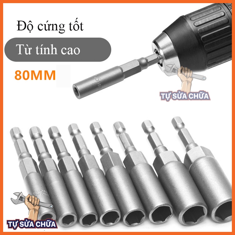 Freeship- Khẩu, tuýp mở ốc, xiết ốc chuôi lục giác dài 8,5 cm thép Cr-V liền khối phù hợp với nhiều loại máy khoan mua tại đây