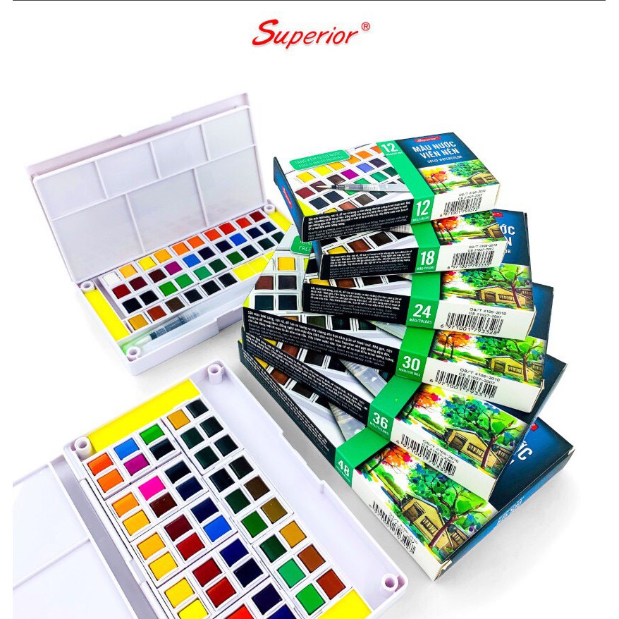 [Phiên bản mới] Màu nước Superior 12/18/24 màu viên nén kèm cọ free ship